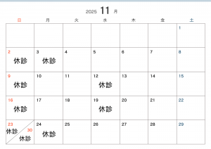 11月の休診日のご案内 2025年10月30日