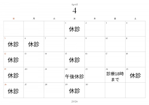 4月の臨時休診と診療時間変更のお知らせです。